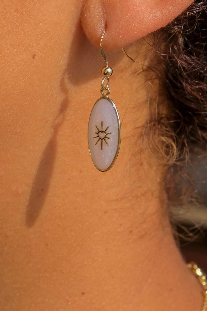 Boucles d’oreilles ovales cœur ensoleillé nacré