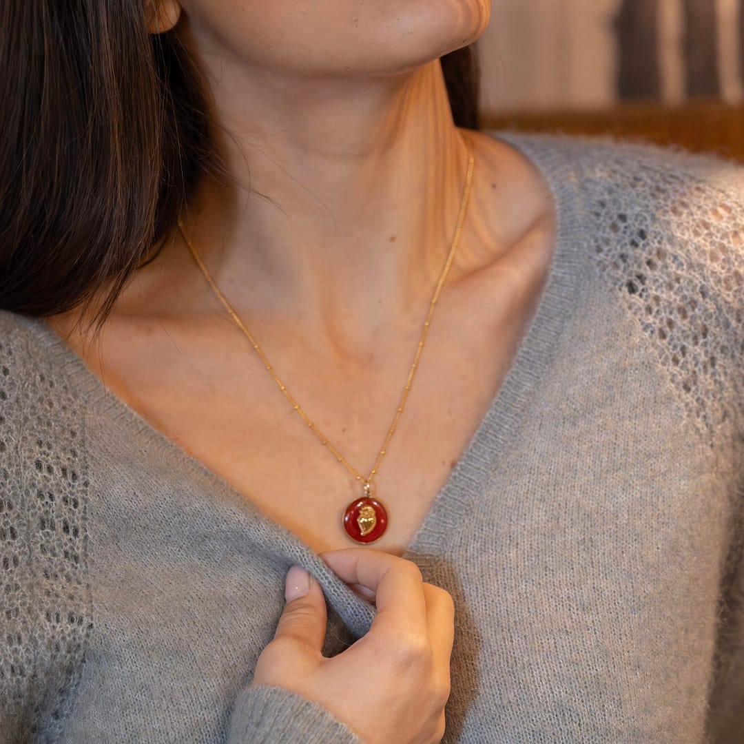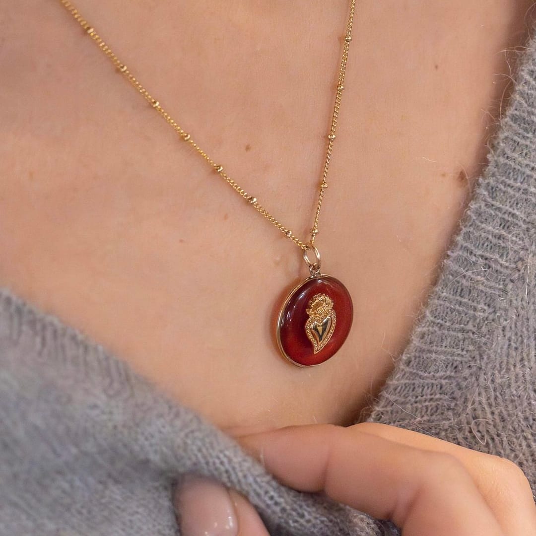- MATIÈRES : Gold Filled, Résine ( ( Les couleurs de chaque médaillon sont réalisées à la main par le mélange de 3 à 6 pigments différents, ce qui rend chaque Breloquine tout à fait singulière ), micro perles, perles fines, grenats, diamants. ( Certaines gemmes précieuses proviennent de bijoux anciens aussi cela rend certaines Breloquines uniques et non reproductibles )