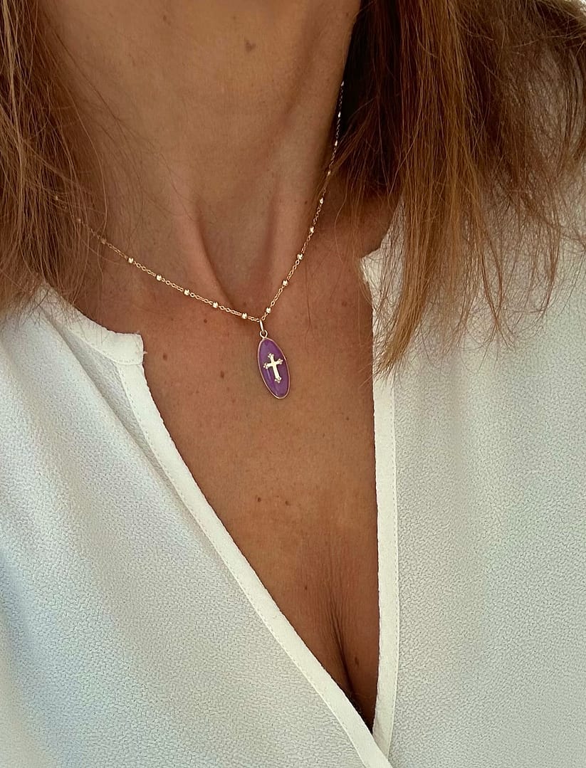 Découvrez notre Médaille Ovale Croix en Résine rose blush une pièce unique qui allie la symbolique de la croix à l’élégance de la résine rose irisée. Chaque médaille est une œuvre d’art, façonnée avec soin pour symboliser la beauté et la sophistication.
