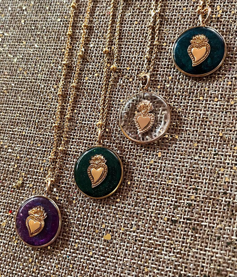 Les couleurs de chaque médaillon sont réalisées à la main par des mélanges de 3 à 6 pigments, ce qui rend chaque Breloquine singulière.