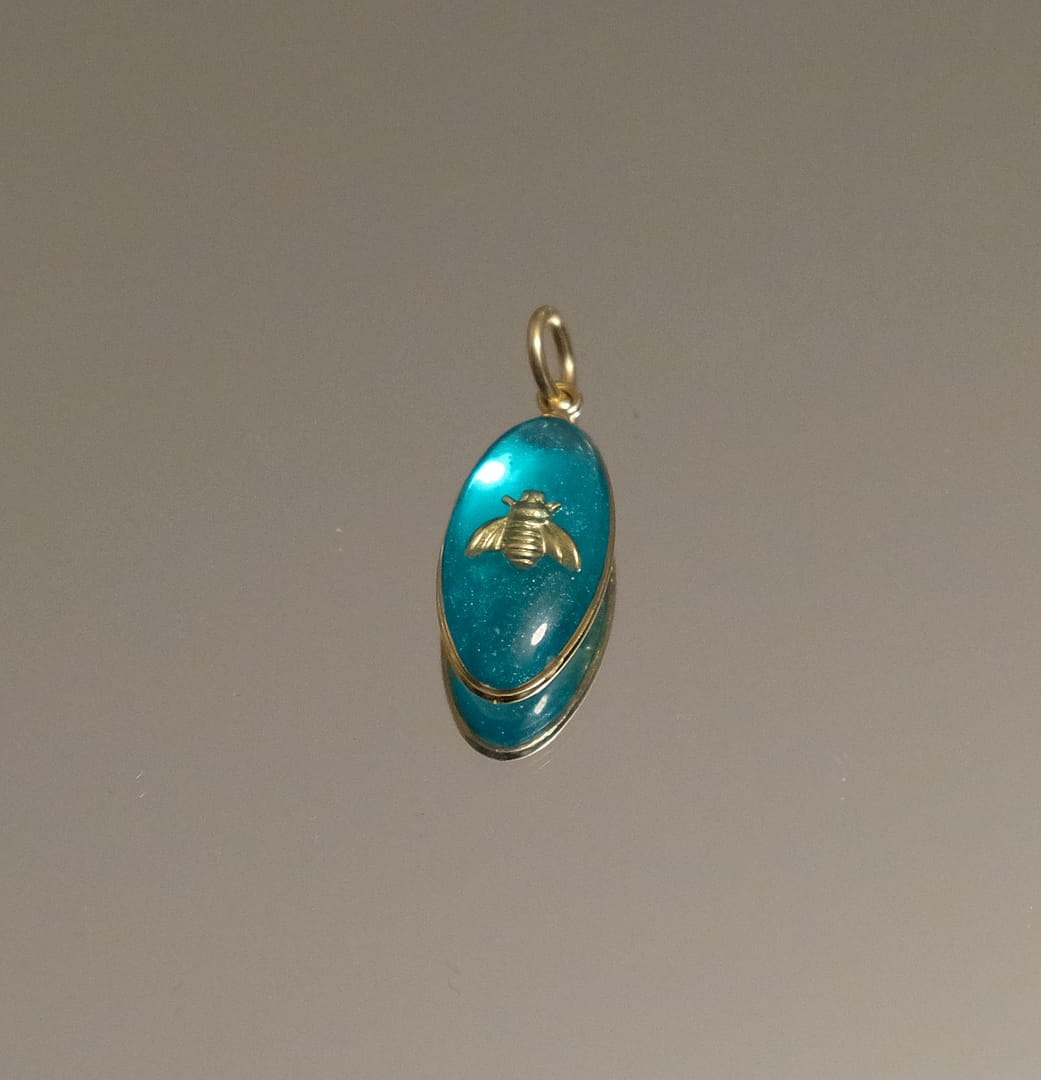 Médaille Ovale Abeille – Bleue Turquoise