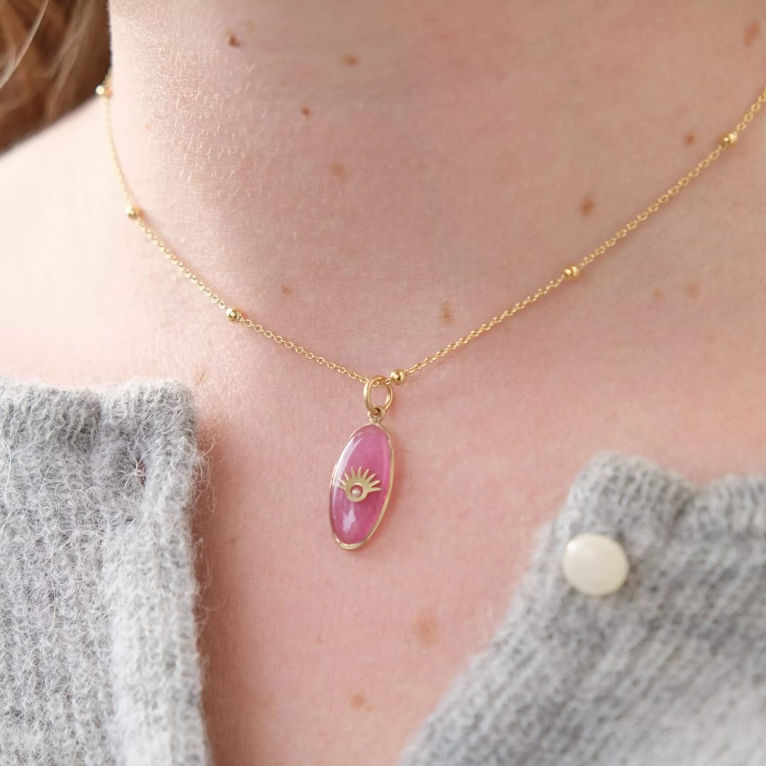 Médaille Ovale Oeil sertie d’une Micro Perle – Rose