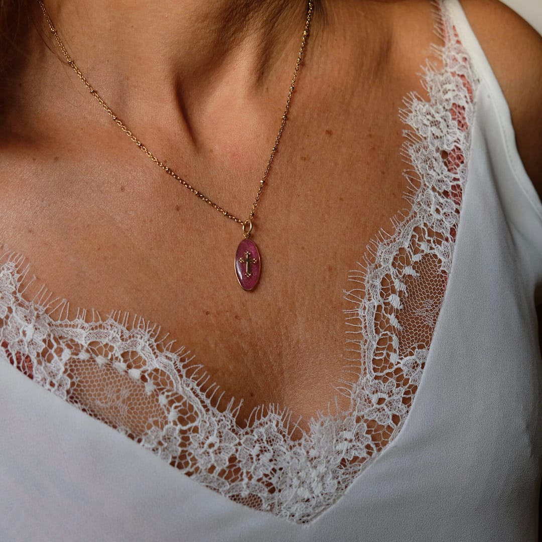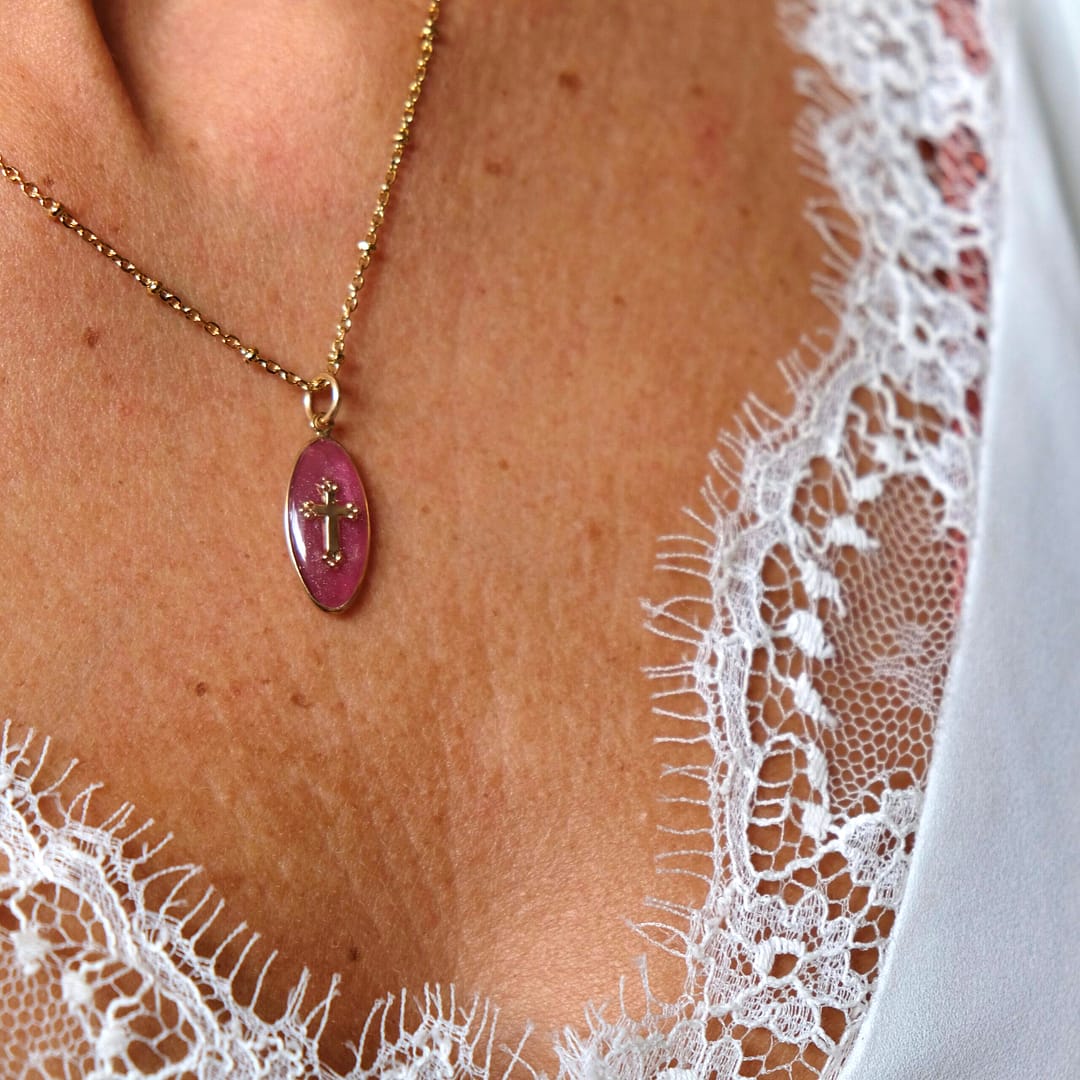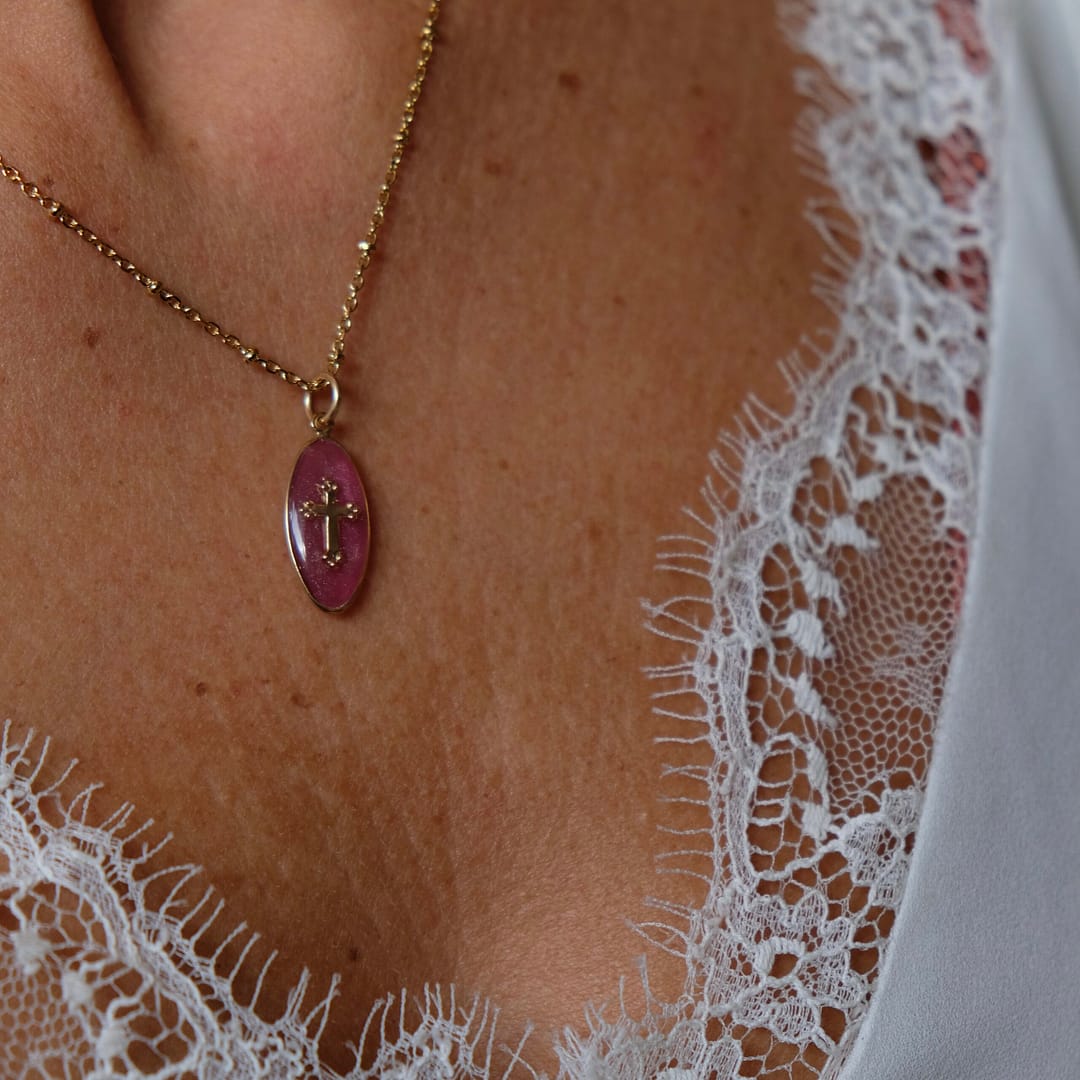 Découvrez notre Médaille Ovale Croix en Résine Rose, une pièce unique qui allie la symbolique de la croix à l’élégance de la résine rose. Chaque médaille est une œuvre d’art, façonnée avec soin pour symboliser la beauté et la sophistication.