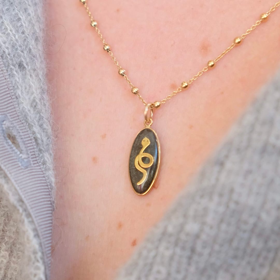 Le serpent est un symbole complexe qui peut évoquer diverses significations, de la sagesse et de la transformation à la tentation et à la dualité. Cette médaille capture la forme délicate du serpent tout en utilisant de la résine noire irisée, qui ajoute une touche de mystère et d’élégance.