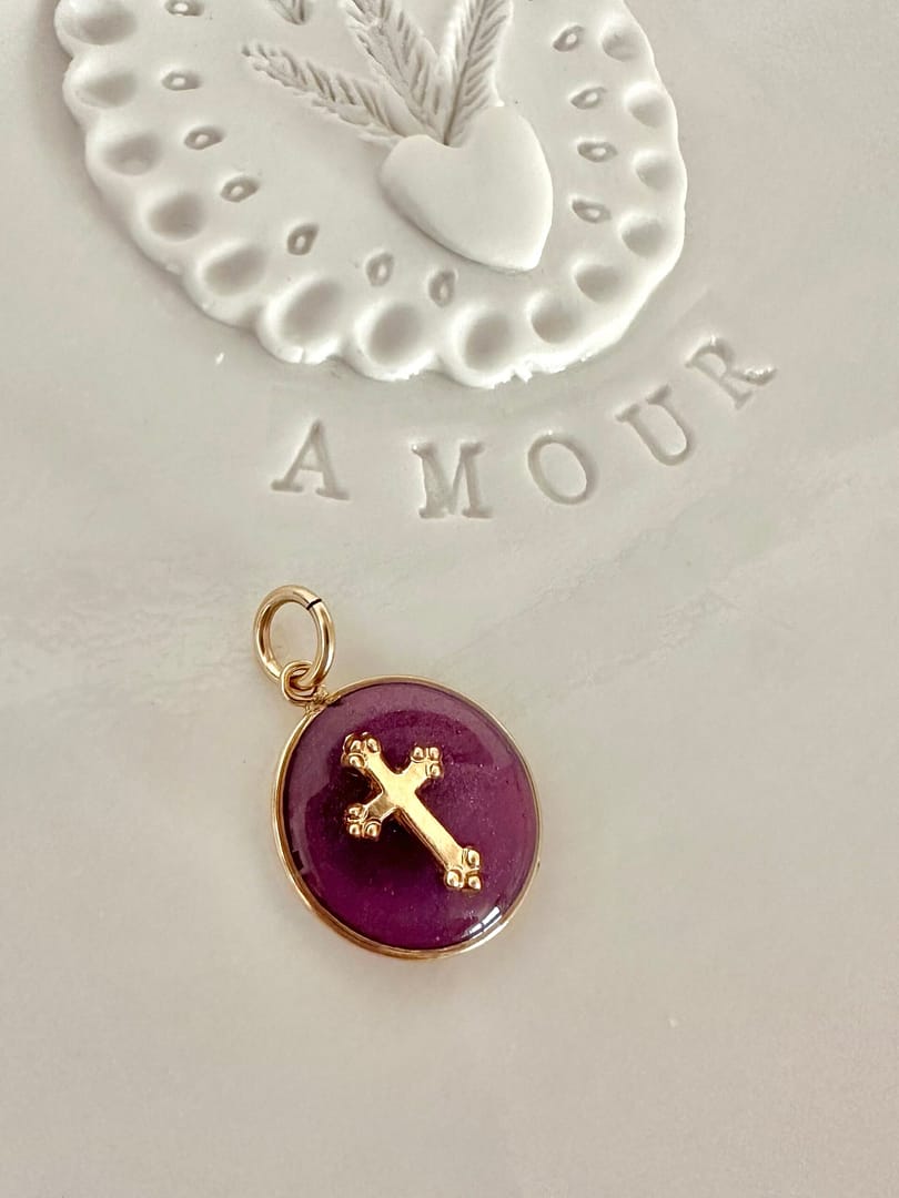 Médaille « S » croix baroque – prune