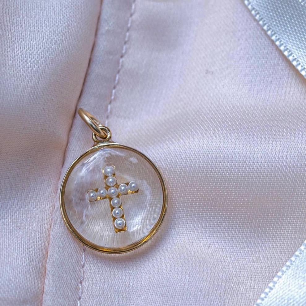 Médaille « S » Croix Perlée – Transparente