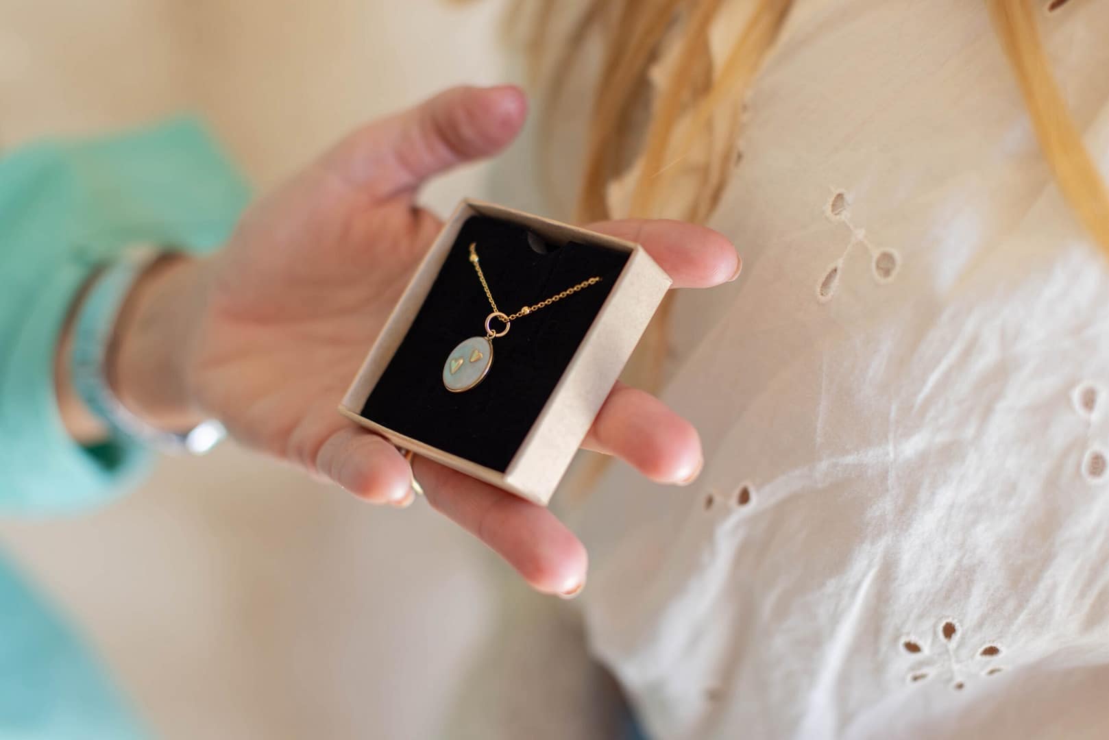 Un bijou symbolique de l’amour partagé qui ne quittera plus le cou de l’heureuse élue.