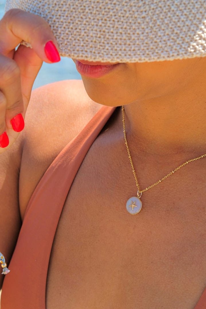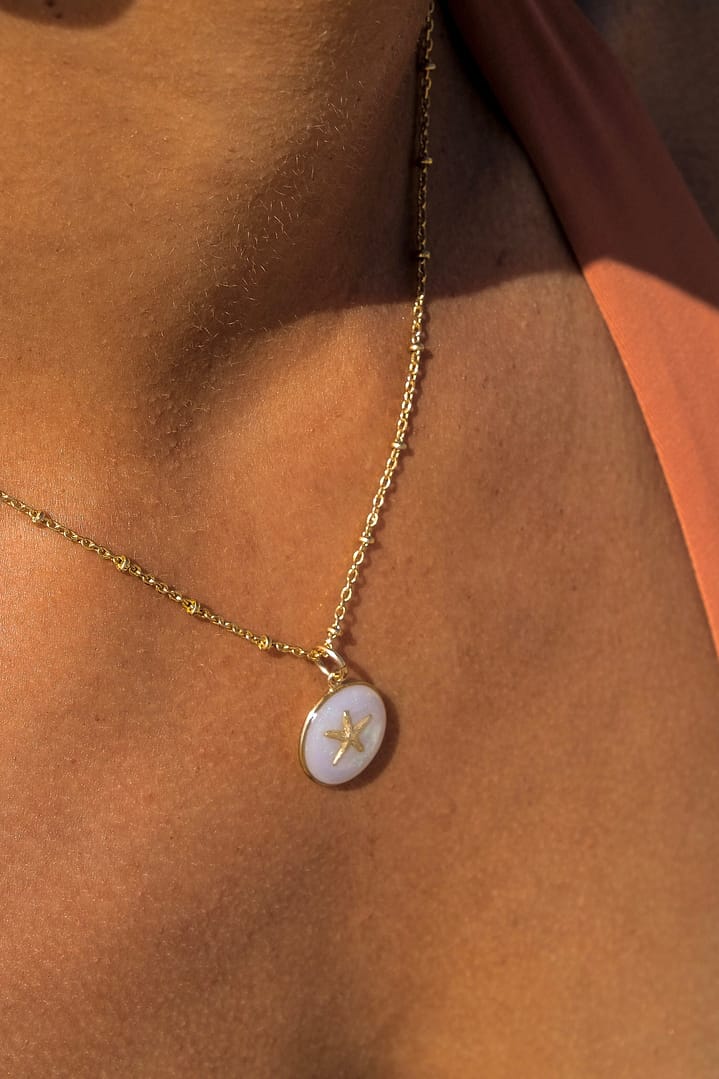Découvrez notre Médaille Étoile de Mer nacrée une pièce unique inspirée par la beauté et la symbolique de l’océan. Chaque médaille est une œuvre d’art, façonnée avec soin en gold filled et résine.
