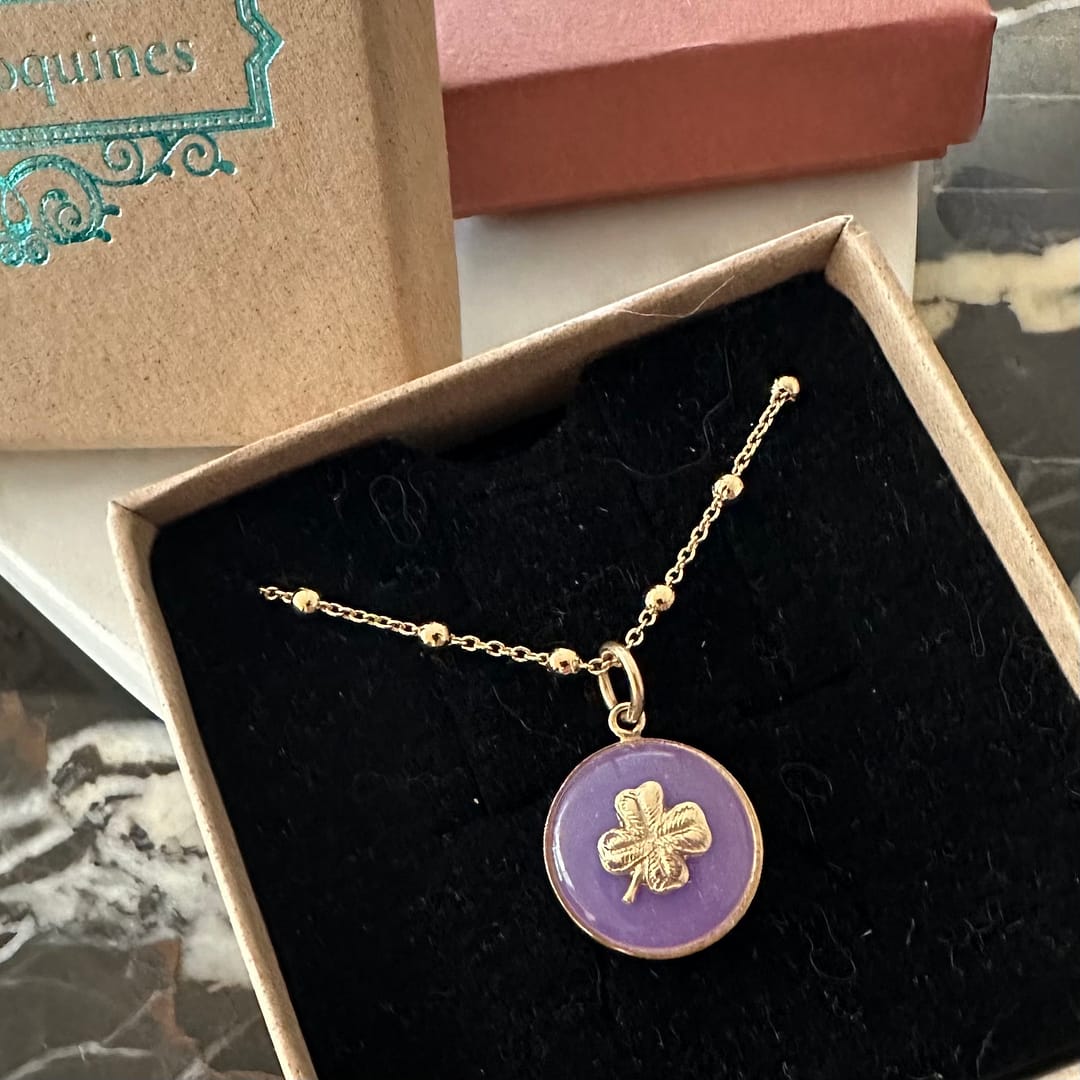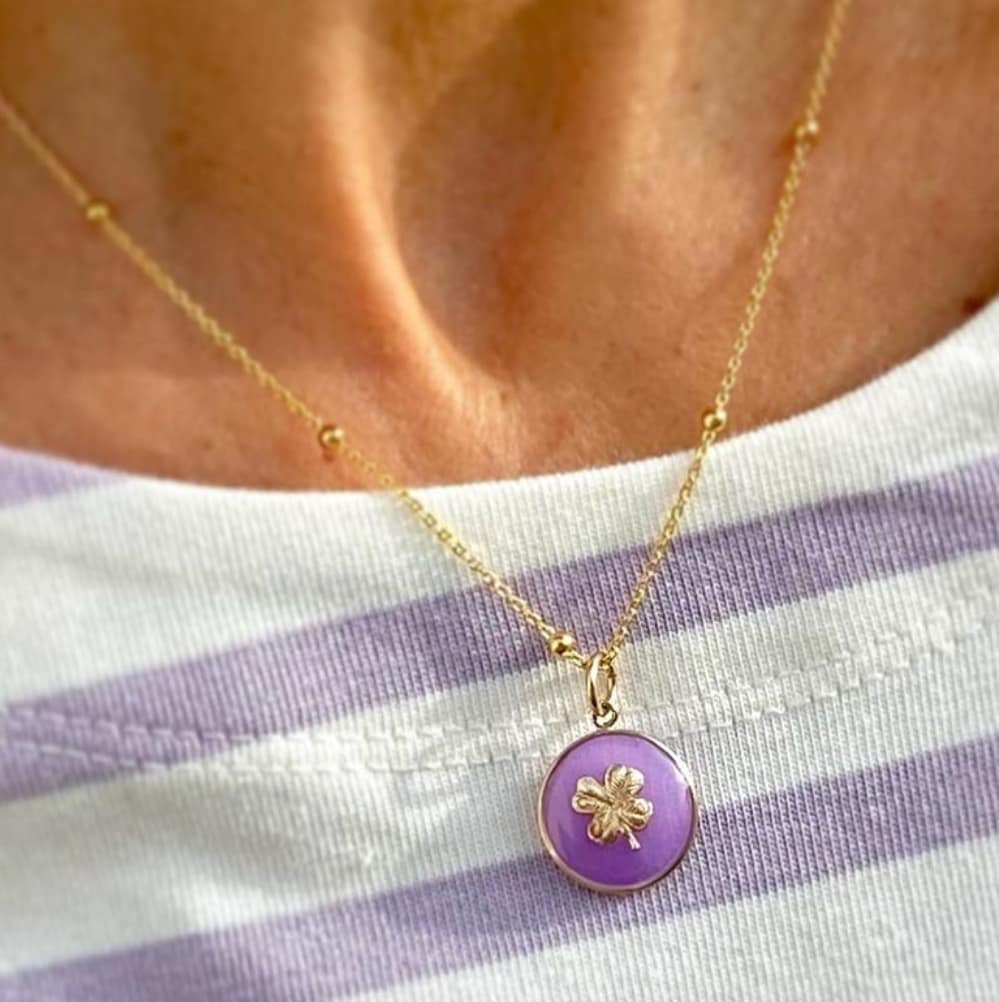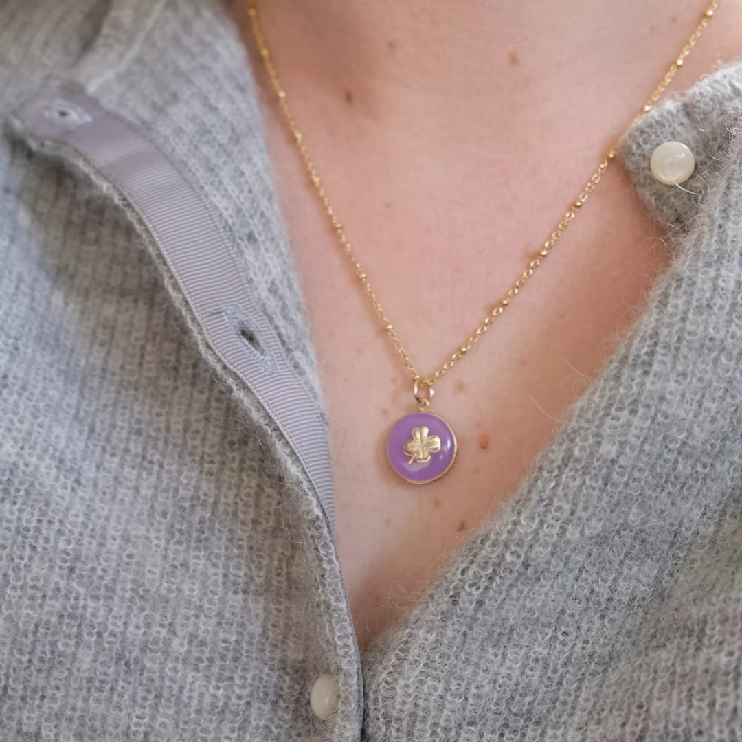 Découvrez notre Médaille Trèfle en Résine Lilas, une pièce unique qui évoque la chance et la beauté de la nature dans une élégante teinte lilas. Chaque médaille est une œuvre d’art unique, façonnée avec soin pour symboliser la chance et la fraîcheur du trèfle, tout en capturant la profondeur de la résine lilas.